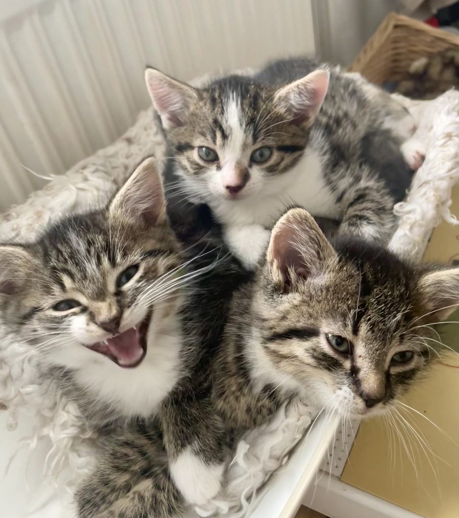Diese Anfang Oktober geborenen Katerchen wurden ausgesetzt in der Nähe der Hirschbornteiche in Salmünster gefunden, zum Glück wurden sie rechtzeitig von Spaziergängern entdeckt, sie hätten die Nacht sonst nicht überlebt. Die Kleinen waren zwar dehydriert und unterkühlt, aber ansonsten sehr gepflegt, so dass wir davon ausgehen, dass sie zuvor nicht im Freien gewesen sind. Mittlerweile sind sie nach ein paar kräftigen Mahlzeiten wieder munter und sehr agil, bereits entwurmt und futtern fleißig, um jetzt groß und kräftig zu werden. Ab Dezember können sie zu zweit oder zu einem anderen Kätzchen dazu in Wohnungshaltung vermittelt werden.