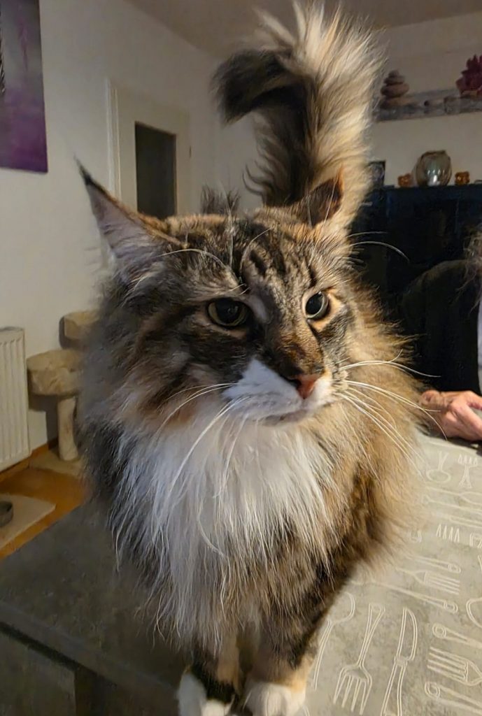 Necky ist 10 Jahre alt und lebt bei einer älteren Dame in Hanau, wo sie aus gesundheitlichen Gründen nicht mehr bleiben kann. Das Katzenmädchen lebte bisher mit einem Kater zusammen, eine Vergesellschaftung mit einer anderen Katze ist also durchaus möglich, muss aber nicht sein. Die Fellmaus ist eine Norwegische Waldkatze und muss regelmäßig gebürstet werden, damit ihr Haarkleid nicht verfilzt.
